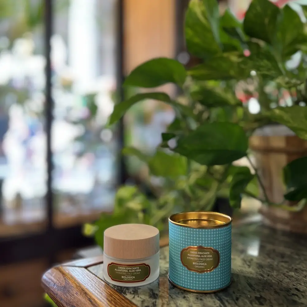 The Moisturizing Cream from the Organic Line of Antica Farmacia del Cinghiale is a non-greasy extra-thin cream with a reduced percentage of oily phase to avoid the “shiny skin” effect. Contains Extra Virgin Olive Oil, Wheat Proteins and Aloe Vera.